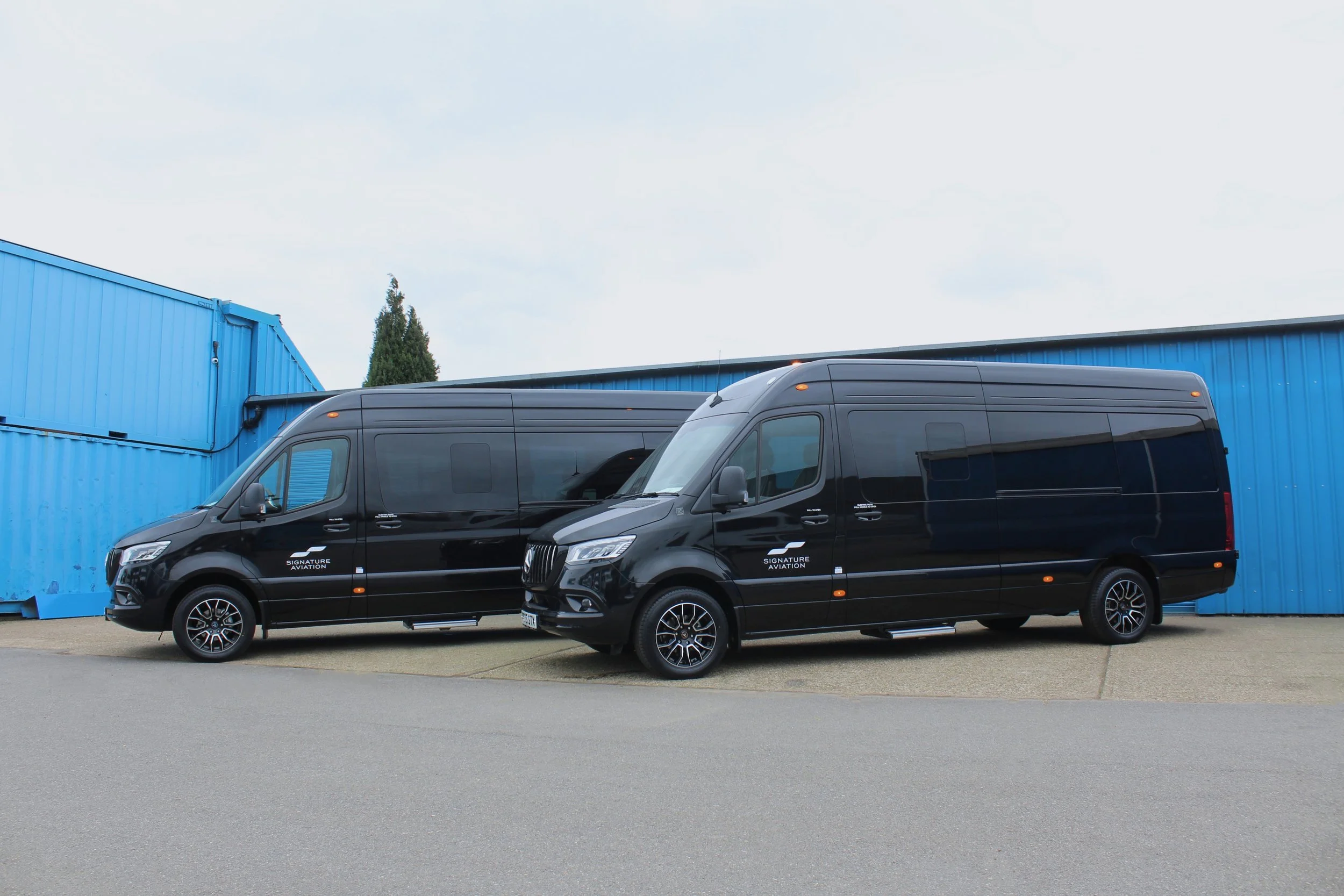 We are honoured to work with the world’s leader in private aviation services, Signature Aviation, to supply them with two brand-new premium Mercedes Sprinter mini-coaches.