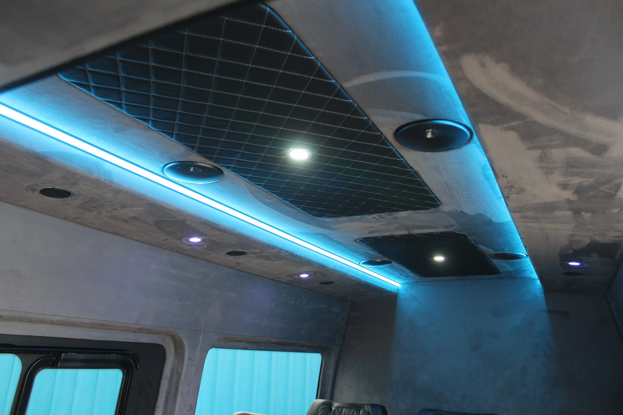 When complete the new vehicle will feature a luxury passenger saloon with six premium seats, two televisions with Apple TV and Bluetooth sound system, a PlayStation 5 and a custom-built rear production area with LED illuminated fold-away dressing table.