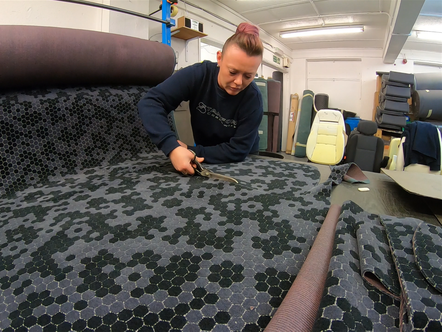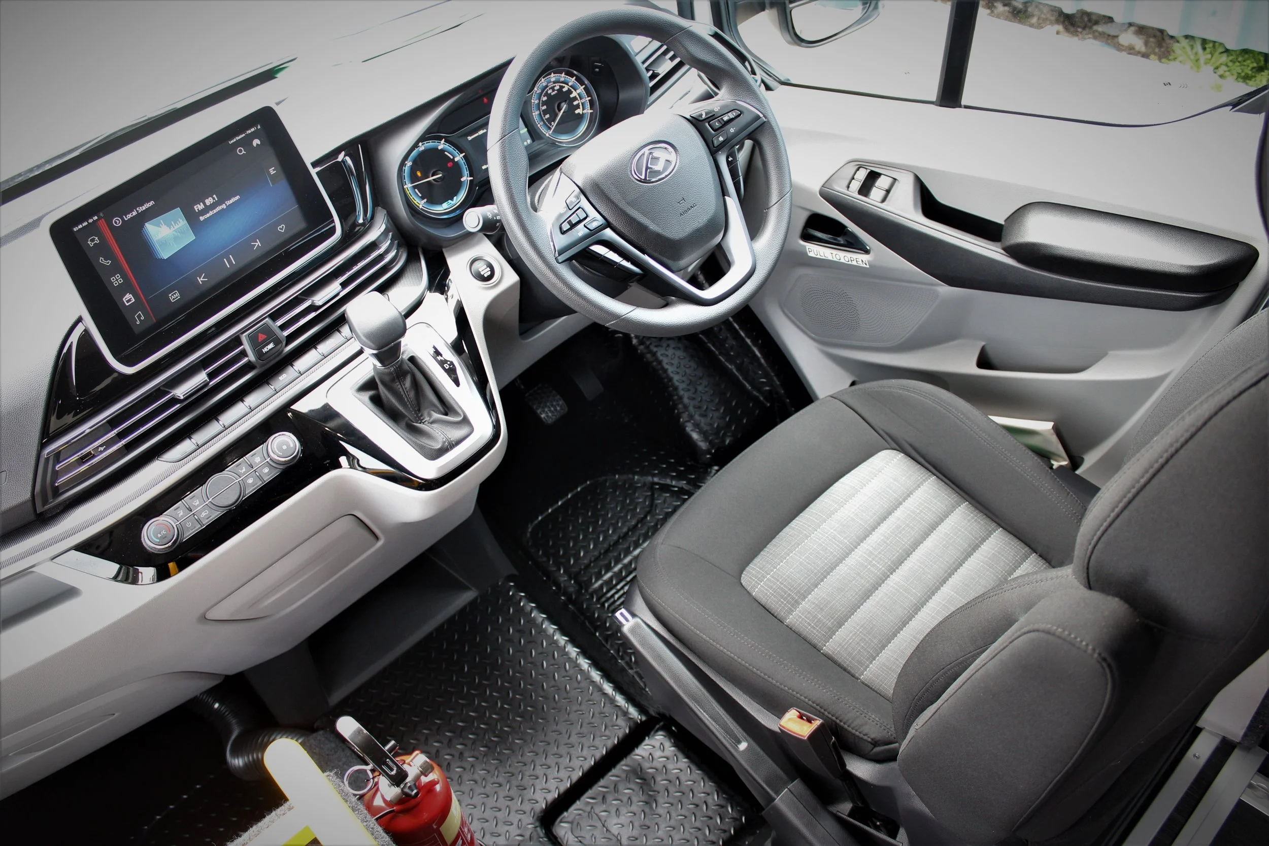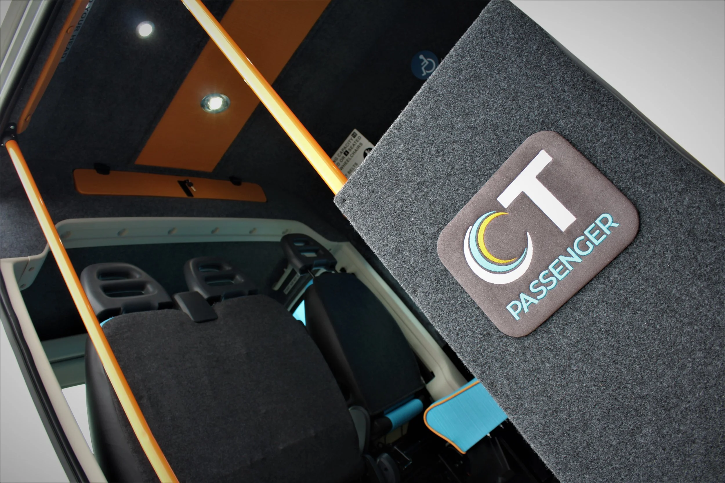 Waverley Hoppa’s fully electric minibus is based on a M2 brake-approved Maxus eDeliver 9 and can transport up to eleven seated passengers. Their new minibus features an upgraded interior with grey wood-effect flooring and seats upholstered in a premium wipe clean grey material, complete with custom ‘S-style’ silver stitching and piping. To add a splash of colour, we finished all of the vehicle’s grab handles in bright yellow. To find out more about this vehicle, head over to our news page by clicking here.