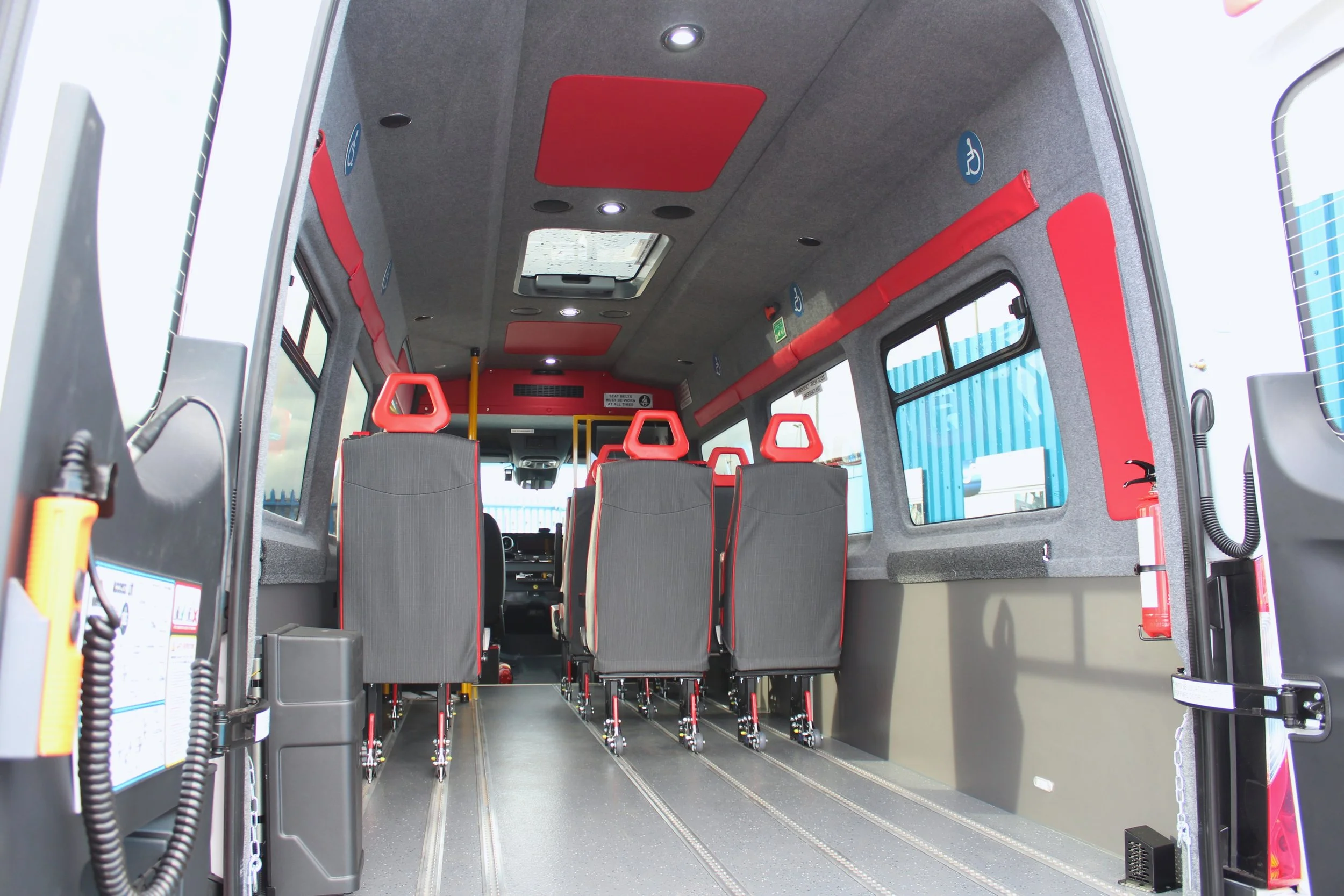All five Sprinters feature our specialist Flat Floor design. By eliminating wheel arch intrusions entirely, the SCW Flat Floor creates an unrestricted rear saloon area - maximising usable space for both seating and wheelchair positions. This design not only improves comfort and maneuverability but also gives our customers greater flexibility when configuring layouts for different service requirements.