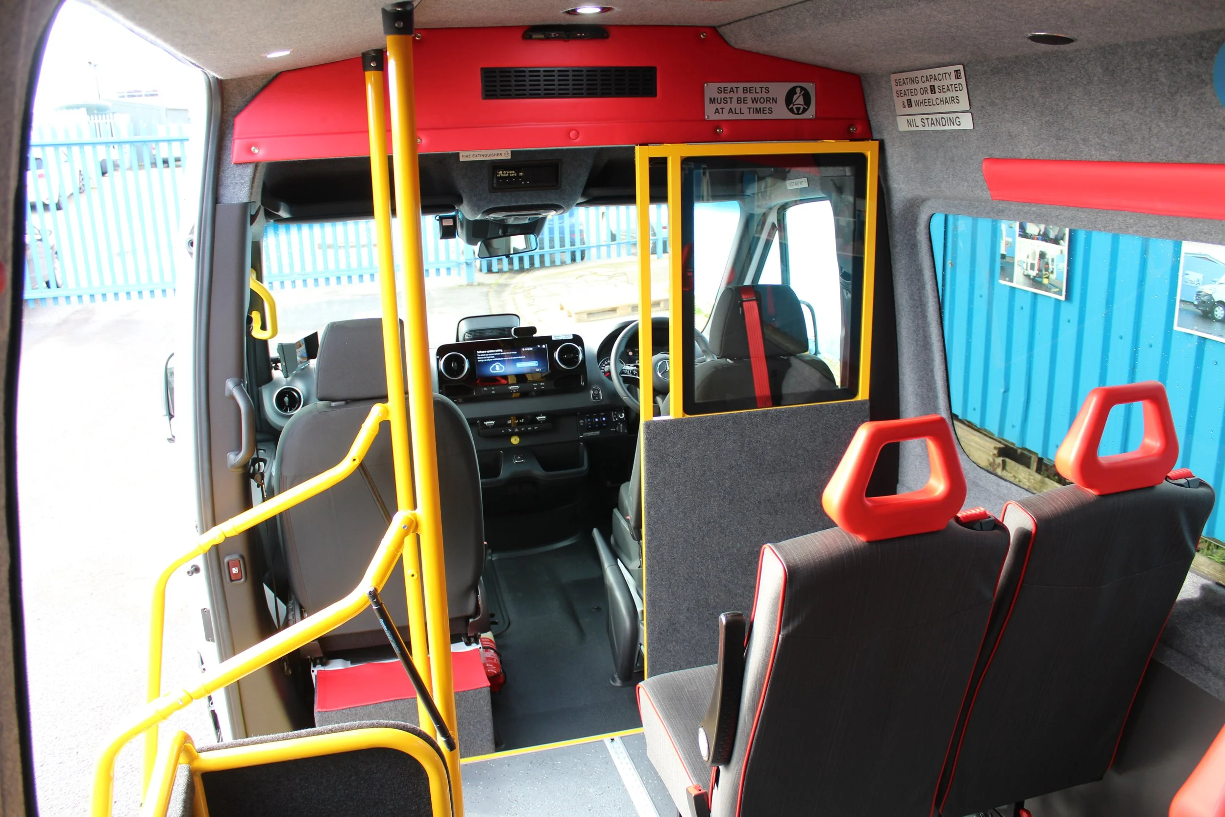Each of the five vehicles are based on the L4H2 Mercedes Sprinter, offering the ideal base vehicle for high-capacity, multi-use transport. Inside, the vehicle features 9 x wipe clean passenger seats with the capacity to transport up to 16 x passengers or 5 x wheelchairs if required. Each vehicle also features an underfloor tail lift and our exclusive low-entry fold-out side step for complete accessibility. As each vehicle will be used around busy towns and cities, an essential cycle warning system has been fitted.