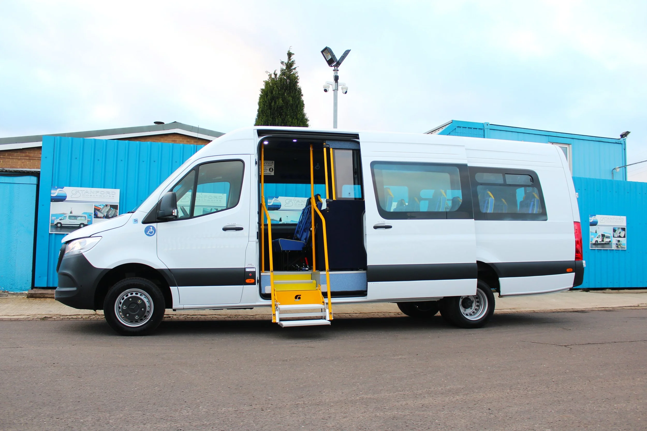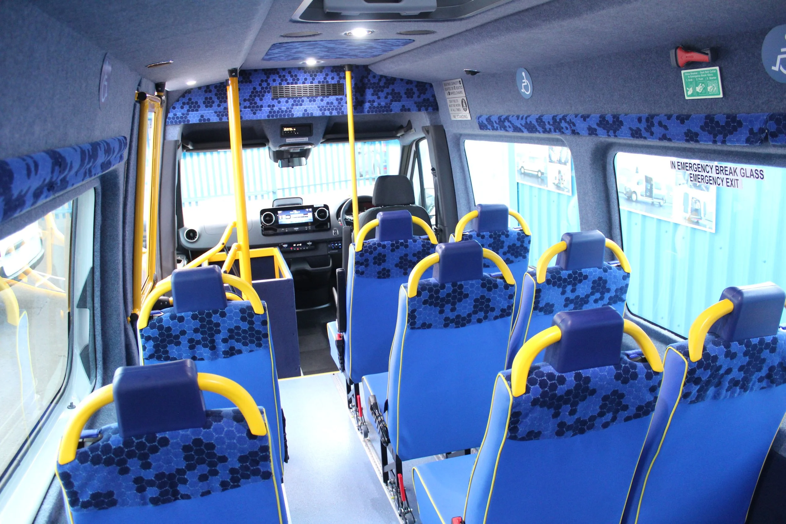 Each conversion has been designed with both practicality and passenger comfort in mind. The vehicles can accommodate up to 15 passengers plus driver or 5 wheelchairs and feature a PLS internal tail lift with automatic DoorSafe for secure and efficient boarding. The defining feature of these Mercedes Sprinters is our specialist Flat Floor design, which eliminates all wheel arch intrusions in the rear saloon. This innovative design maximises usable space in the passenger saloon, allowing for additional seating and wheelchair capacity.