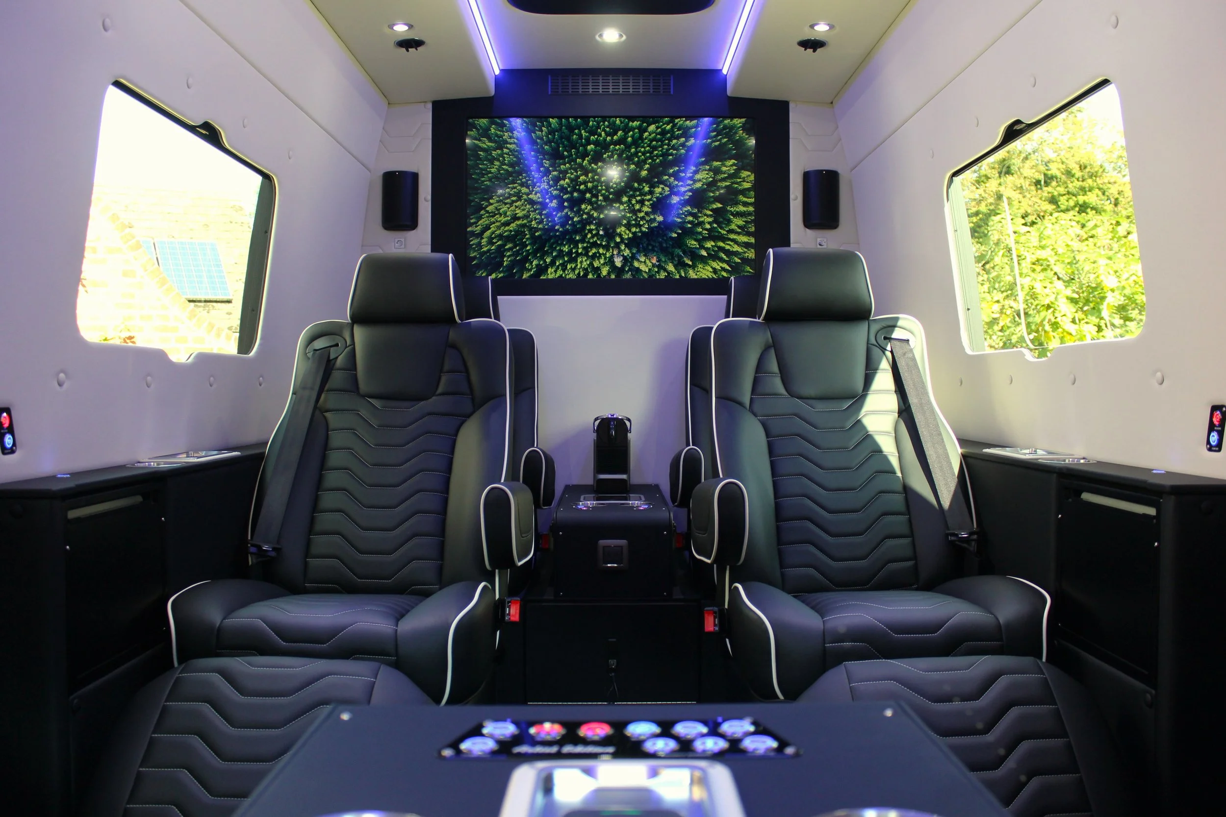 For this specialist project, we worked closely with Band Van Hire to tailor the bespoke build to the evolving needs of touring professionals. With VIP passenger seating, on-the-road entertainment and plenty of refreshments, Band Van Hire’s Artist Edition Tour Bus is sure to deliver elevated comfort and functional elegance.