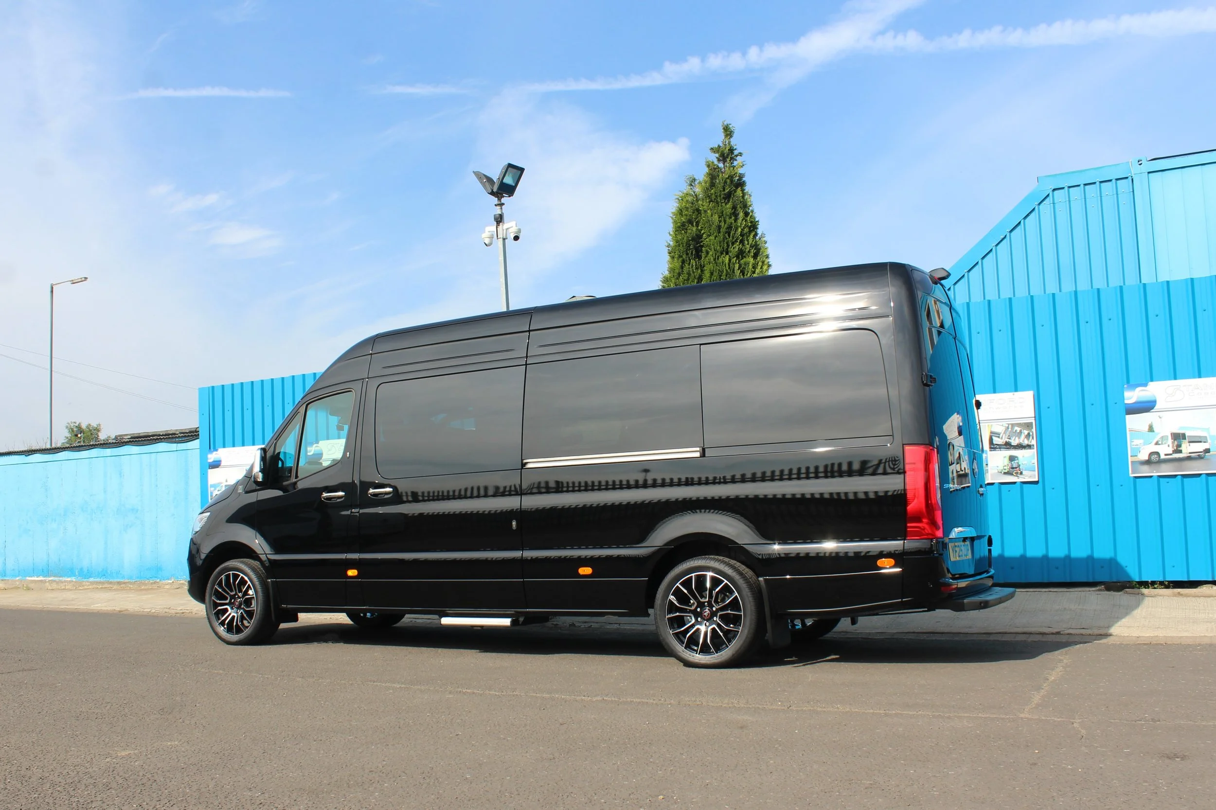 Based on the L3H2 Mercedes Sprinter, the Lamb Brothers latest vehicle can transport up to 8 passengers plus driver and features a comfortable passenger cabin with a custom-built dressing room in the rear.