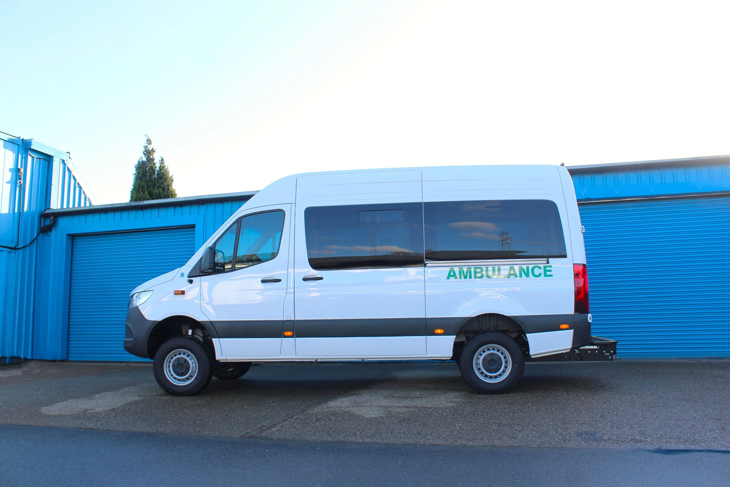 This 4x4 Patient Transport Service (PTS) ambulance has been expertly converted to ensure access to those in need, whatever the terrain or conditions. Built on the Mercedes Sprinter L2H2 AWD, this specialist vehicle can accommodate up to five seated passengers or, with seats removed, up to two wheelchair users.